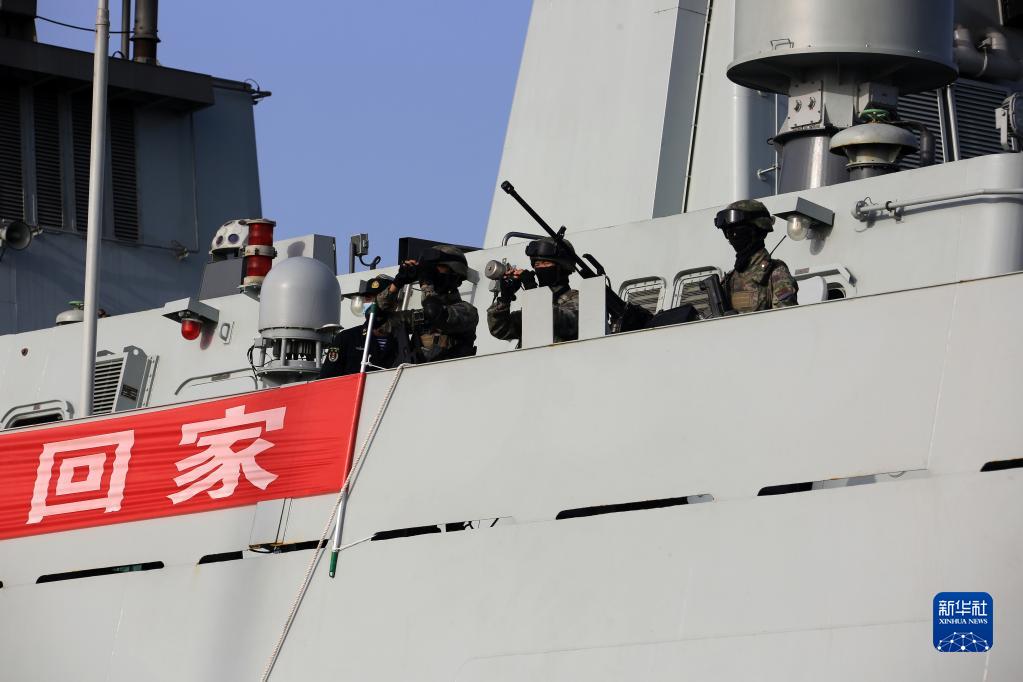 当地时间4月26日,中国海军导弹驱逐舰南宁舰、综合补给舰微山湖舰紧急驶赴苏丹,执行撤离我在苏丹人员任务。这是海军陆战队队员在撤离现场担负警戒任务。