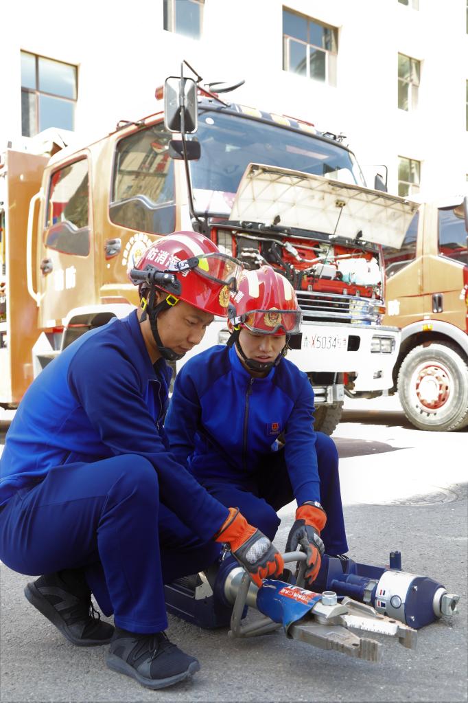 “出发时撒一条,跑动中接一条,两条消防水带连接时,接口要对准,听到‘咔嚓’声才算接好。一定要多练苦练,才能在黑暗环境下做到盲操……”日前,在青海省西宁市城西区西川南路消防救援站,站长助理玛尼坚戴着头盔,向队员讲解、演示消防水带的使用要领。