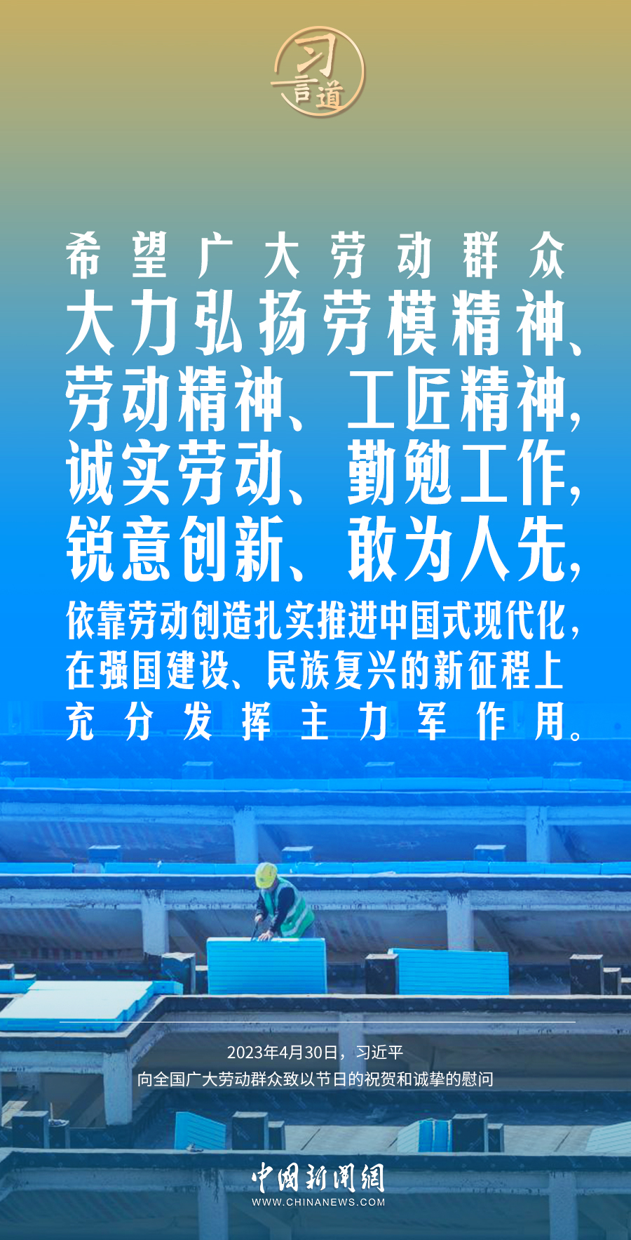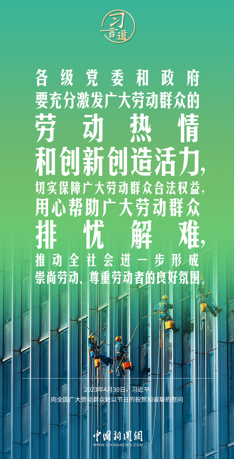 在“五一”国际劳动节到来之际,中共中央总书记、国家主席、中央军委主席习近平代表党中央,向全国广大劳动群众致以节日的祝贺和诚挚的慰问。习近平指出——
