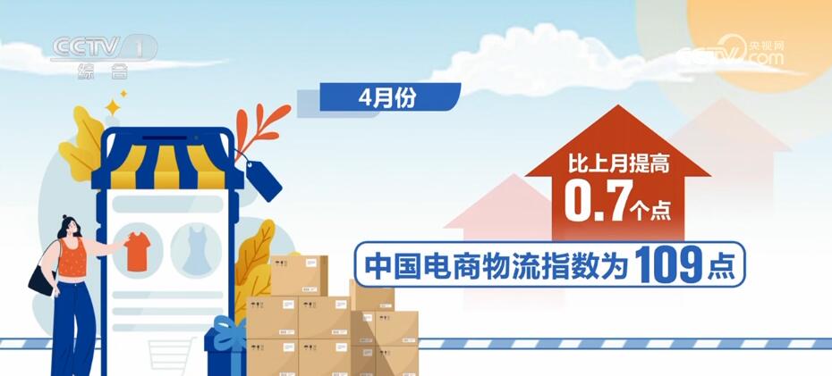 在国内消费恢复带动下,电商物流指数也呈现连续上涨态势。4月份,中国电商物流指数为109点,比上月提高0.7个点。电商物流总业务量和农村电商业务量实现连续4个月上涨,电商物流总业务量增幅扩大,农村电商总业务量增速重回20%以上。
