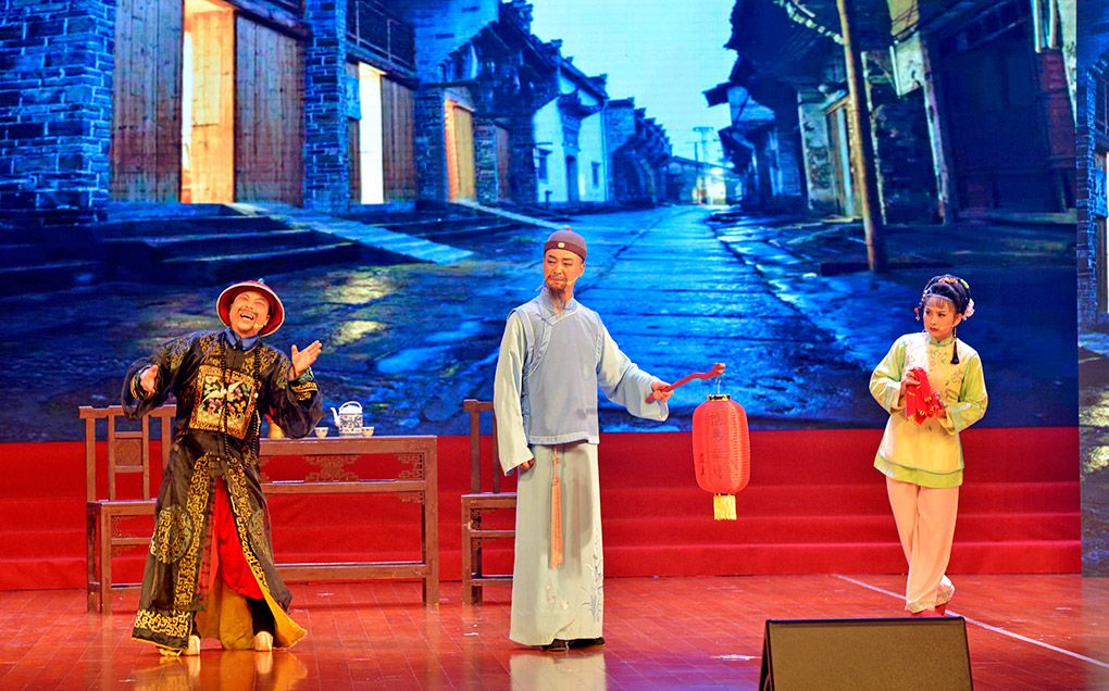太湖县纪委监委深入挖掘本地历史资源,创作黄梅廉政小戏《“六大人”还乡》在基层单位巡回展演。 方清山/摄