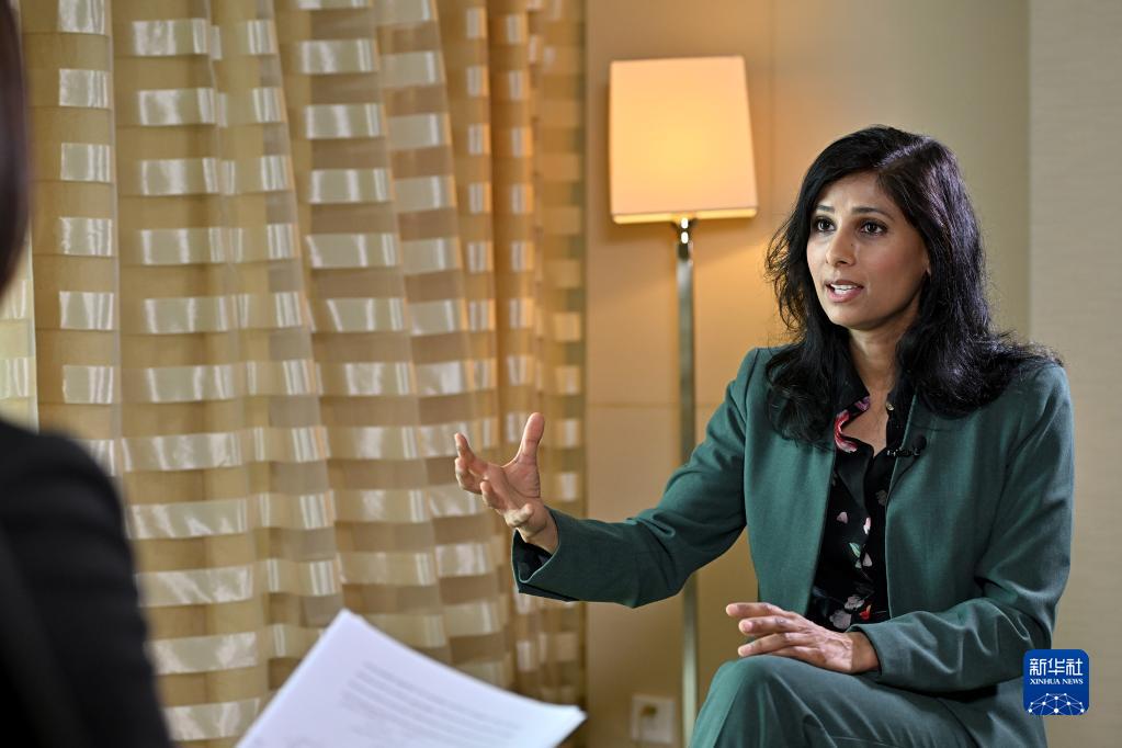 国际货币基金组织(IMF)第一副总裁吉塔·戈皮纳特接受新华社记者专访(5月8日摄)。新华社记者 李鑫 摄