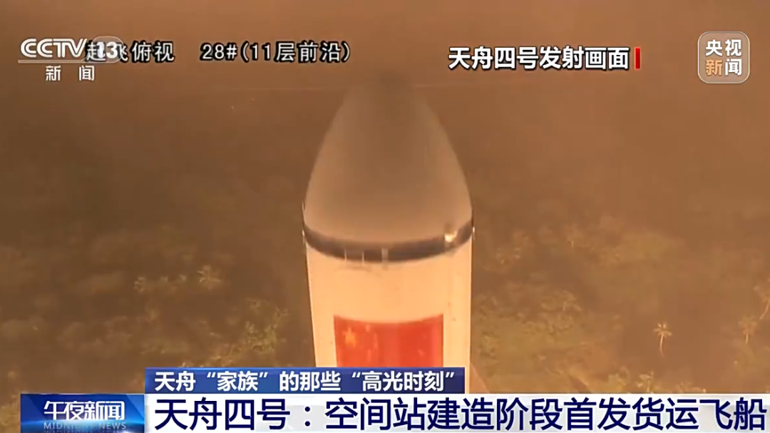 2022年5月10日凌晨,天舟四号货运飞船发射升空,我国空间站在轨建造阶段的首次发射任务取得圆满成功。