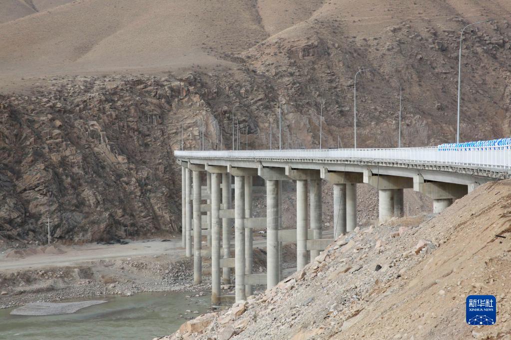 这是2021年11月10日拍摄的吉尔吉斯斯坦新北南公路二期工程的一座大桥。新华社发(罗曼 摄)