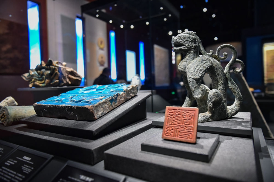 3月28日,北京首都博物馆“辉煌中轴”展览开展。这是北京中轴线出土的展品。新华社记者 陈钟昊 摄