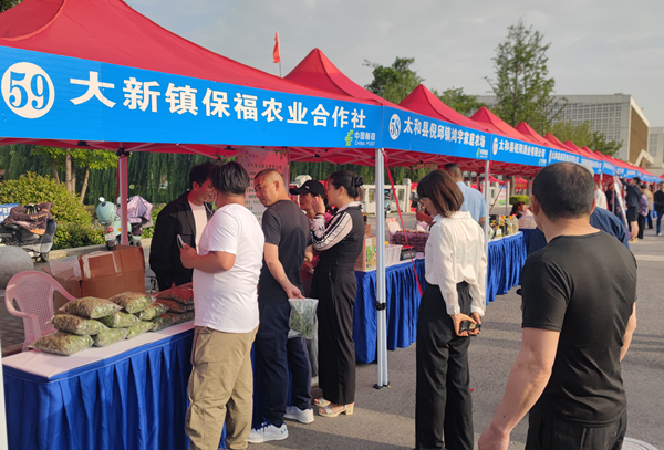 赛场上,运动爱好者奋勇争先、一决高下,不远处的赛场外围同样人声鼎沸,往来者熙攘如潮。当天,太和县乡村振兴成果展在这里开展,110家企业搭起展台精彩亮相,农特产品、电商产品、非遗产品、文创产品等400多个品种琳琅满目,让人眼花缭乱,不少市民和游客在观赛之余,不忘开启“买买买”模式。