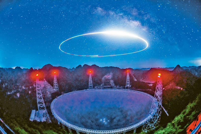 云贵高原大山深处,目前世界最大单口径、最灵敏的射电望远镜“中国天眼”凝望深空,探寻百亿光年之外的射电信号。“中国天眼”的栖身地,贵州省黔南州平塘县克度镇,以“天文小镇”之名,吸引八方访客纷至沓来、开启天文研学之旅。在曾经闭塞寂静的大窝凼里,“中国天眼”看到了遥远星河,也点亮了人间烟火。