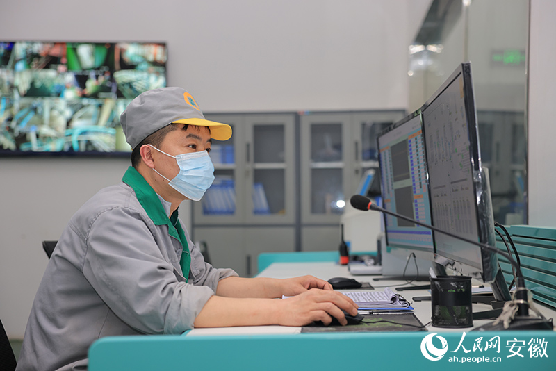 正宇面粉厂监控室内,工人需要时刻了解设备运转情况。人民网记者 王晓飞摄