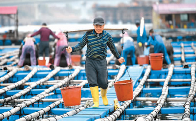 综合整治包含两方面。其一,通过“清海行动”,重新规划和调整养殖海域,推动原先无序、无度的养殖向有序、规范化转变;其二,用可再生的环保塑胶浮球替换原先的泡沫浮球,推动海上养殖向生态环保可持续转变。