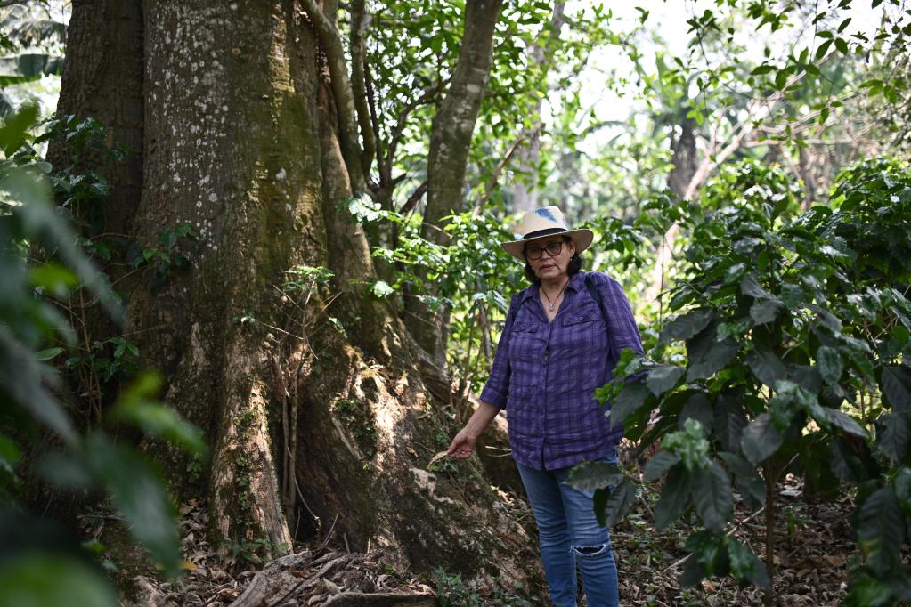 5月6日,在洪都拉斯马尔卡拉,工人在一处咖啡种植园查看作物长势。洪都拉斯的自然条件非常适合咖啡种植,是中美洲主要咖啡出口国之一。(新华社记者辛悦卫摄)