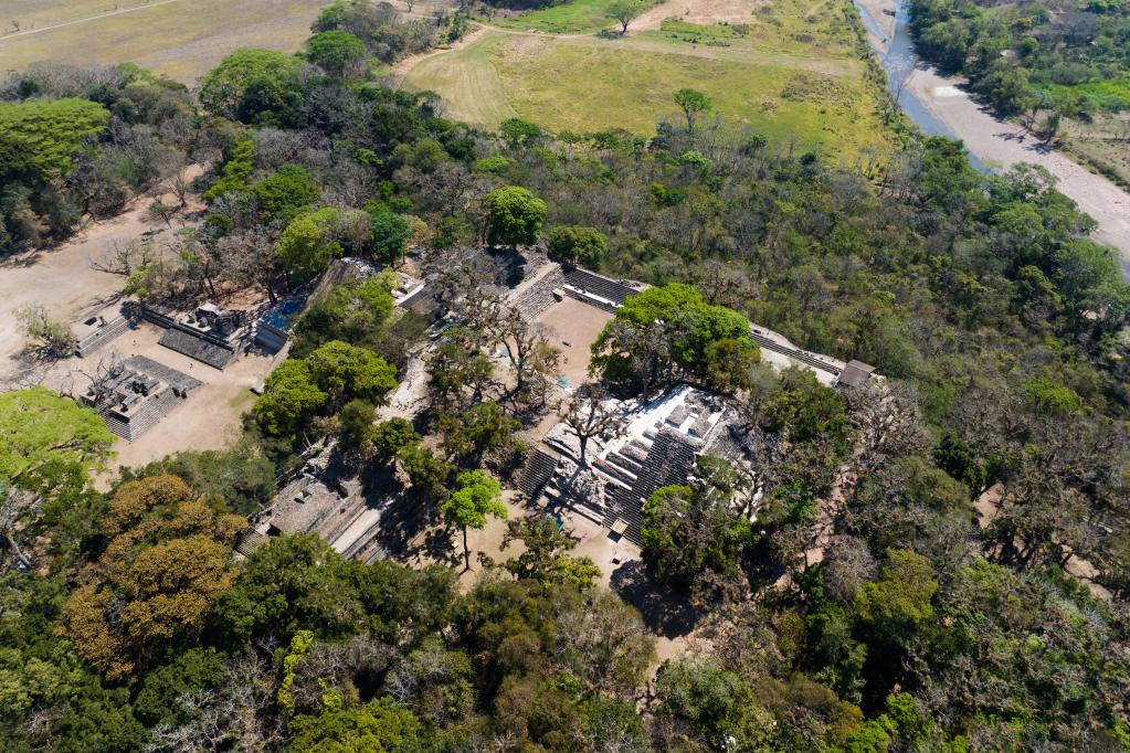 这是4月1日航拍的洪都拉斯科潘玛雅古城遗址(无人机照片)。(新华社记者辛悦卫摄)
