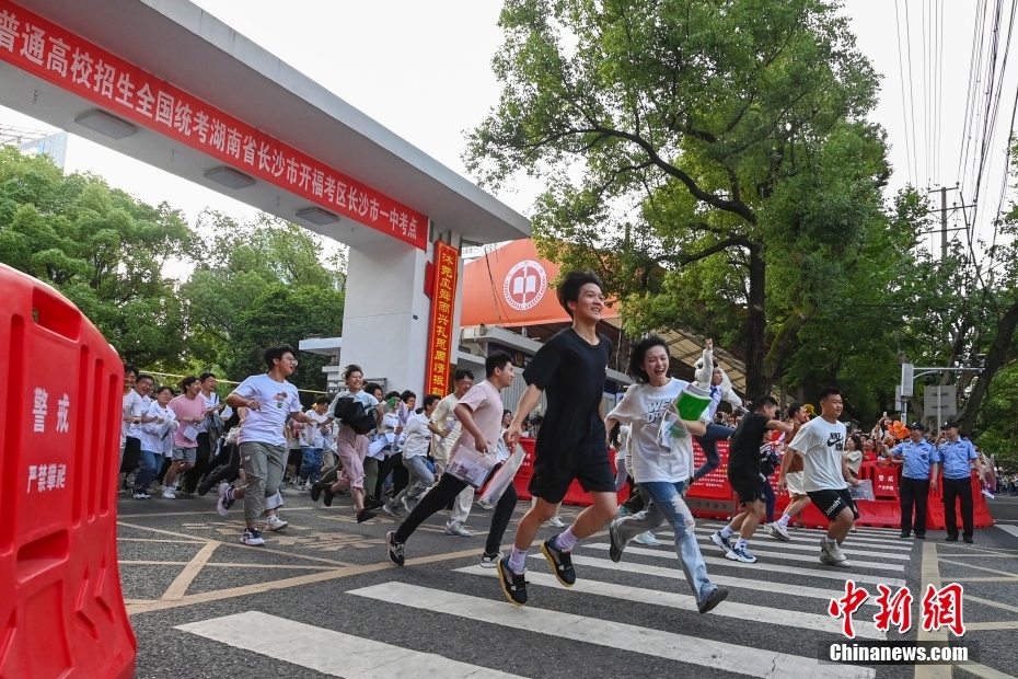 6月9日,湖南省2023年高考结束,考生冲出长沙市一中考点。