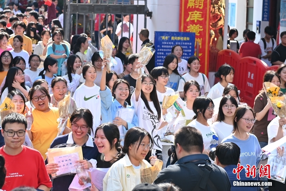 6月9日,湖南省2023年高考结束,考生手举葵花轻松走出考点。