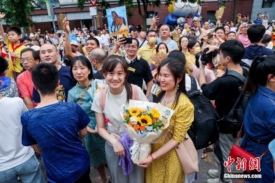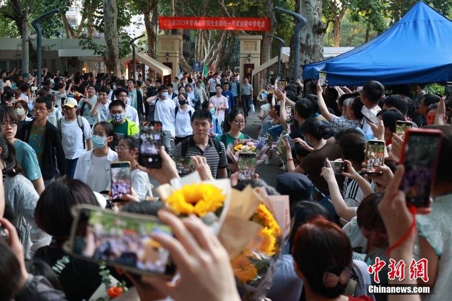 6月9日,江苏南京,考生家长们夹道欢迎考生们从高考考点内走出。当日,江苏2023年高考落幕。