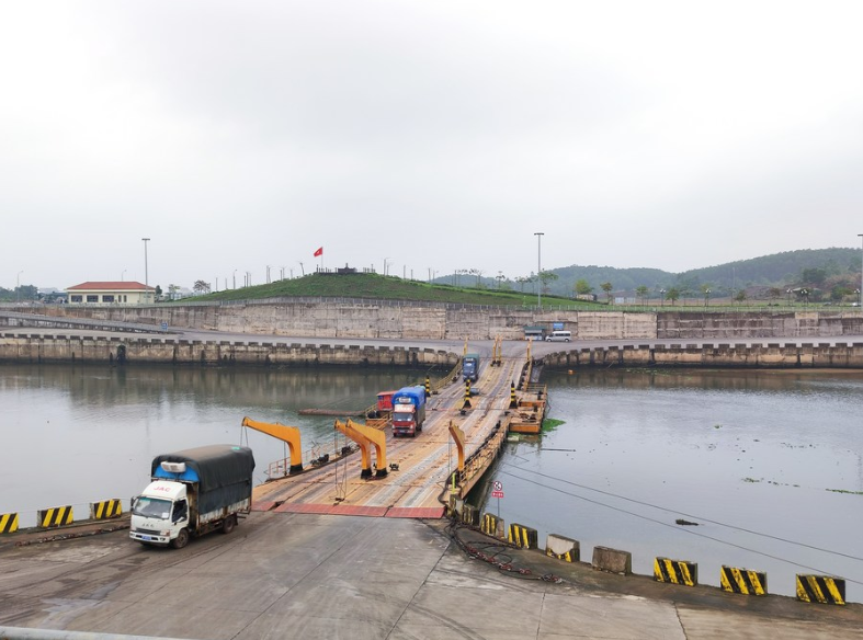 跨境货运车辆通过连通中越两国的北仑河互市浮桥(4月12日摄)。新华社记者 朱丽莉 摄