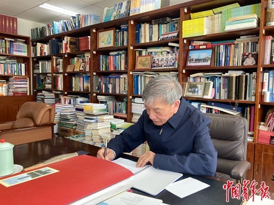 刘嘉麒院士在办公室。