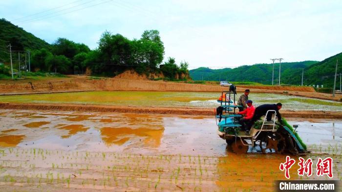 “栽种初夏秧,稻谷满粮仓”。近日,陕西省延安市甘泉县道镇五里桥村的稻农抢抓晴好天气,拉开插秧序幕,确保把水稻全部插在丰产期。