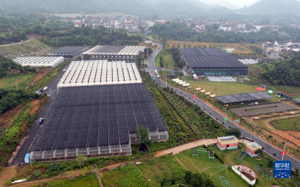 在浙江省绍兴市柯桥区漓渚镇棠棣村拍摄的兰花数字工厂(6月8日摄,无人机照片)。新华社记者 才扬 摄