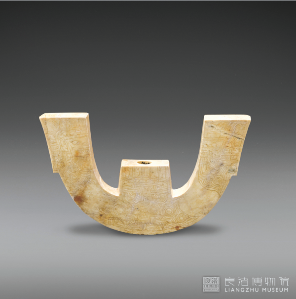 ■良渚文化神人兽面纹玉三叉形器 资料图片