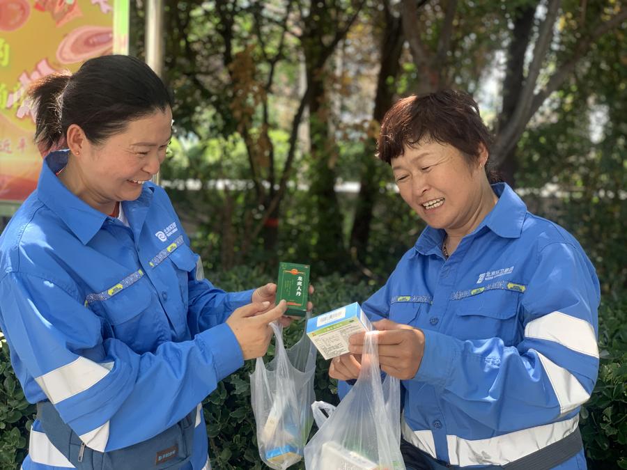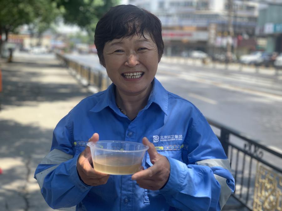 环卫管理部门为环卫工准备了绿豆水和防暑药品。