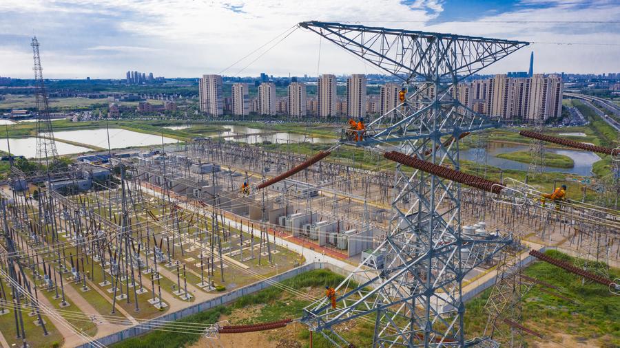 高温天气下,户外施工的电网建设人员十分辛苦。天津电力部门采取了错峰作业方式,减少露天作业时长,防止作业人员出现中暑等不适症状。在天津市武清区220千伏变电站重建工程的施工现场,这几天作业时间已进行了调整。