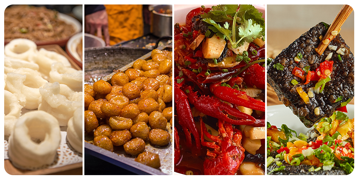 吃:臭豆腐、糖油粑粑、小龙虾等