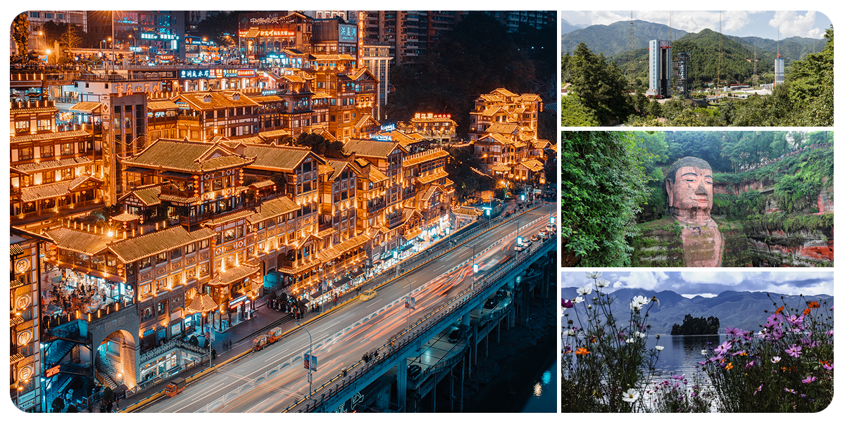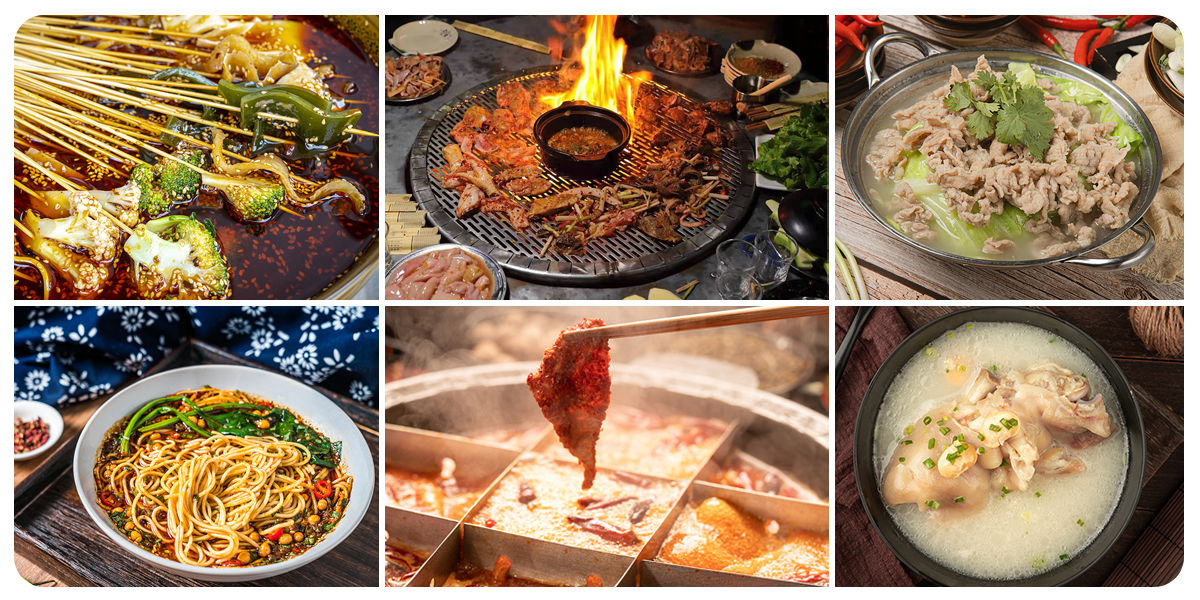 吃:乐山钵钵鸡、甜皮鸭、跷脚牛肉等