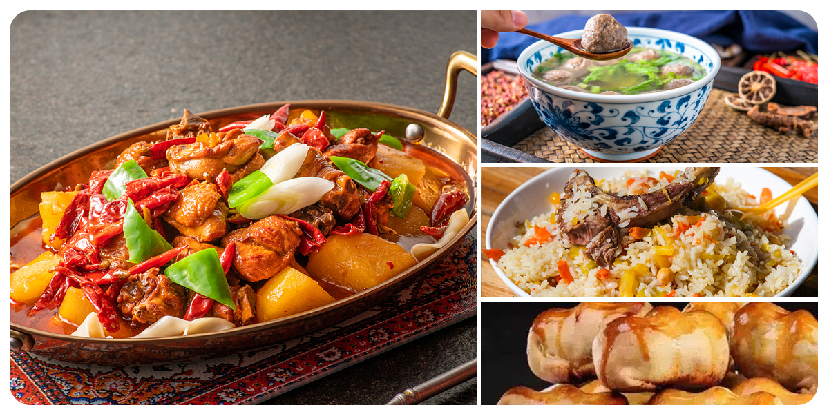 吃:帕尔木丁、羊肉抓饭、牛肉丸子汤等