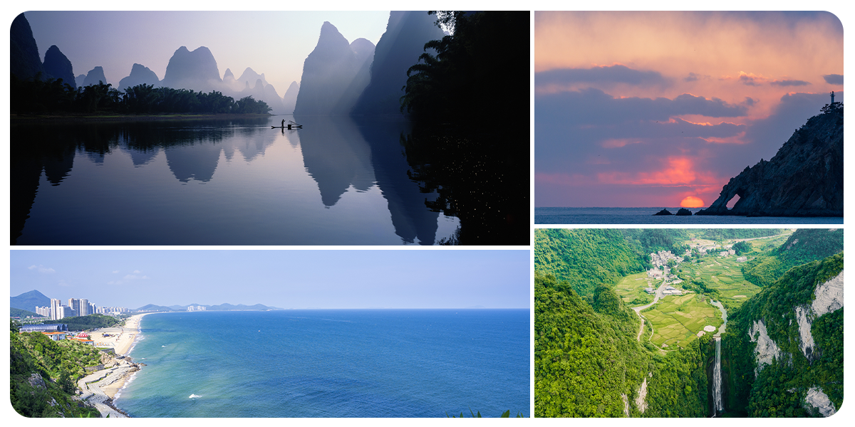 逛:漓江、阳朔山水、象鼻山、龙脊梯田等