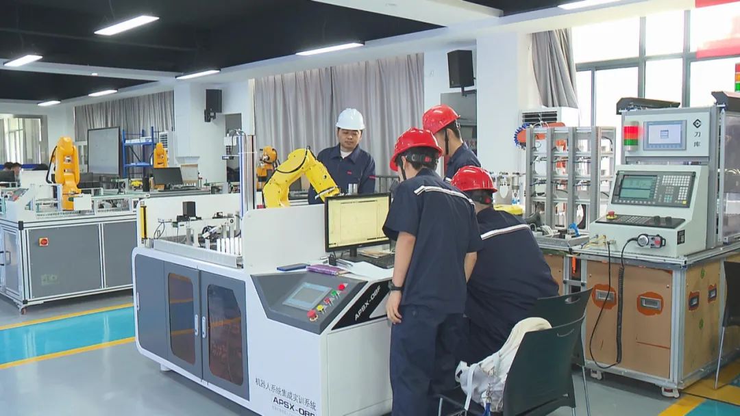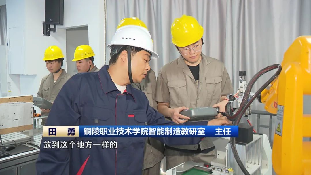 在铜陵职业技术学院智能制造专业的实训课上,老师正在指导学生们模拟智能仓储中工业机器人的运行。这也是学校近几年根据产业需求重点打造的新专业。通过这样的专业培养,为产业输送了一大批能够在生产一线第一时间解决问题的复合型技术技能人才。