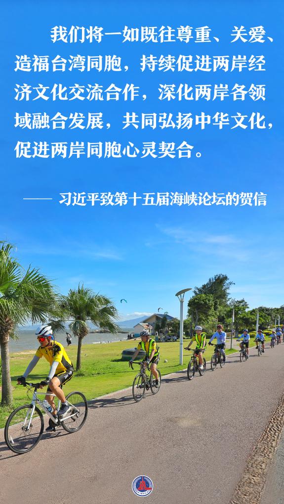 “两岸同胞通过海峡论坛交流交友交心,厚植情谊、增进福祉,越走越近、越走越亲。”习近平在贺信中说。