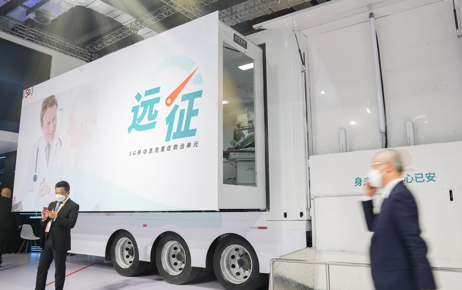 2022年11月6日在第五届进博会医疗器械及医药保健展区拍摄的西门子展台。(新华社记者丁汀摄)