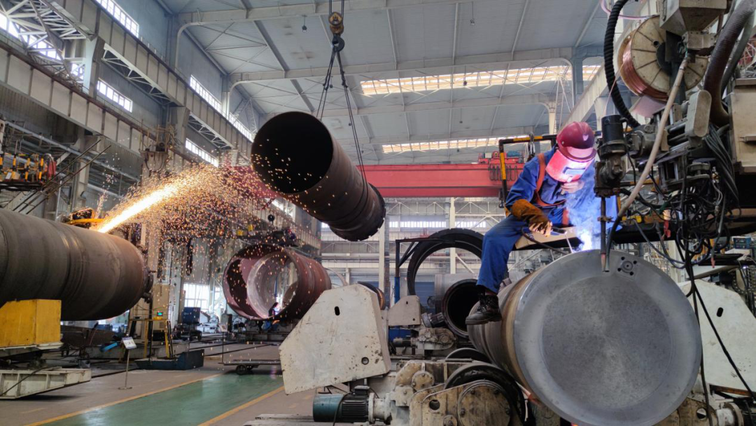 兰石集团重装炼化公司生产车间内,打磨、转序、施焊作业有序进行。 兰石集团供图