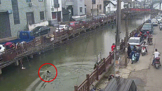众人合力将女孩救上了岸