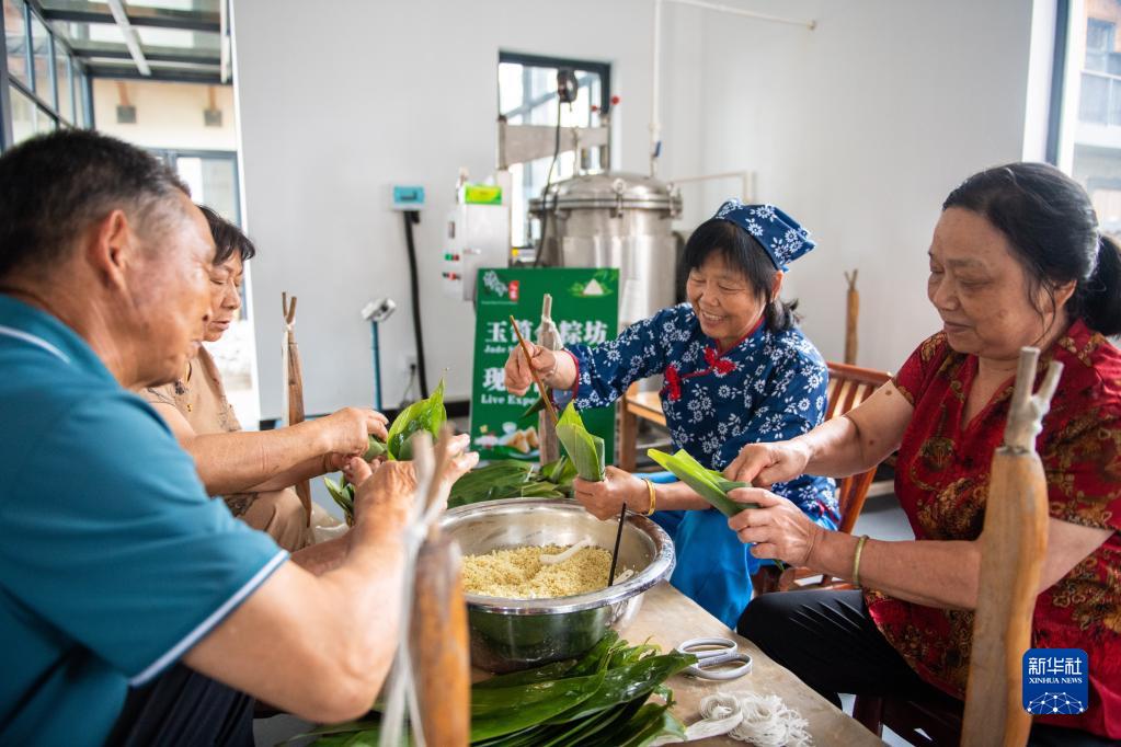 6月22日,在湖南省汨罗市屈子祠镇新义村,村民在包粽子。新华社记者 陈思汗 摄