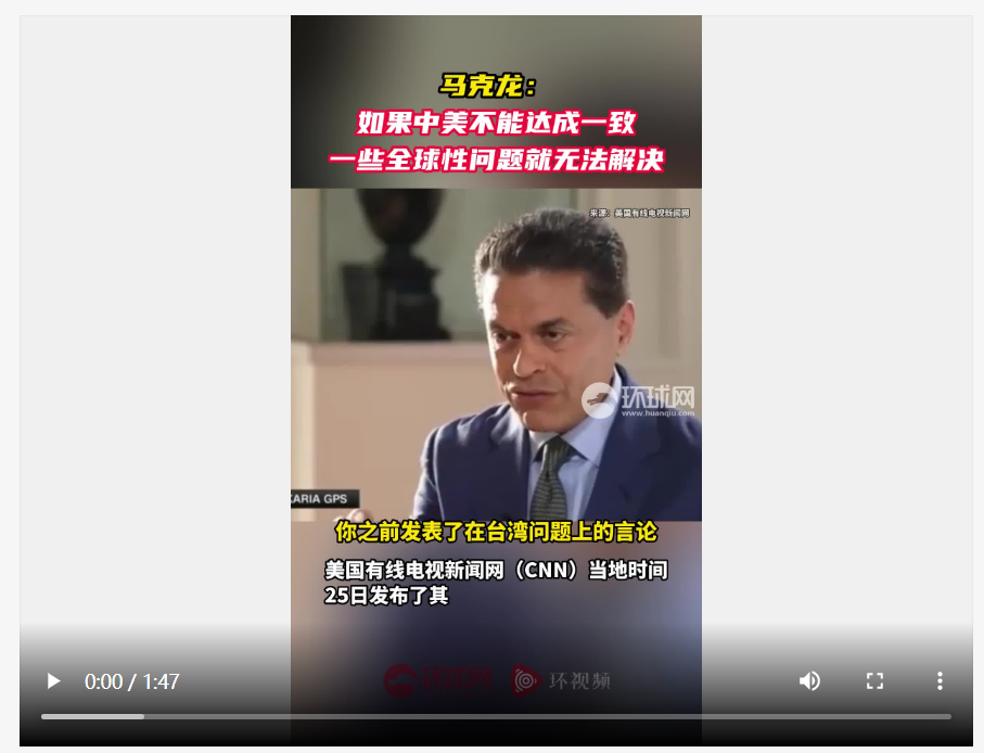 【环球网报道 记者 朱嘉琪】美国有线电视新闻网(CNN)当地时间25日发布了其主播扎卡里亚对法国总统马克龙的采访视频,马克龙在受访时表示,他认为美中合作对解决一些全球性问题至关重要。