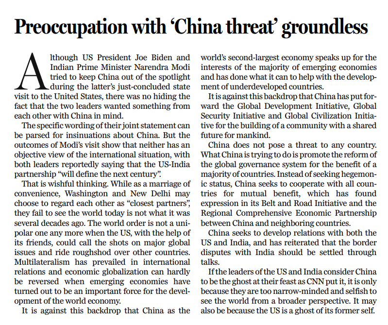 原标题:Preoccupation with ‘China threat’ groundless