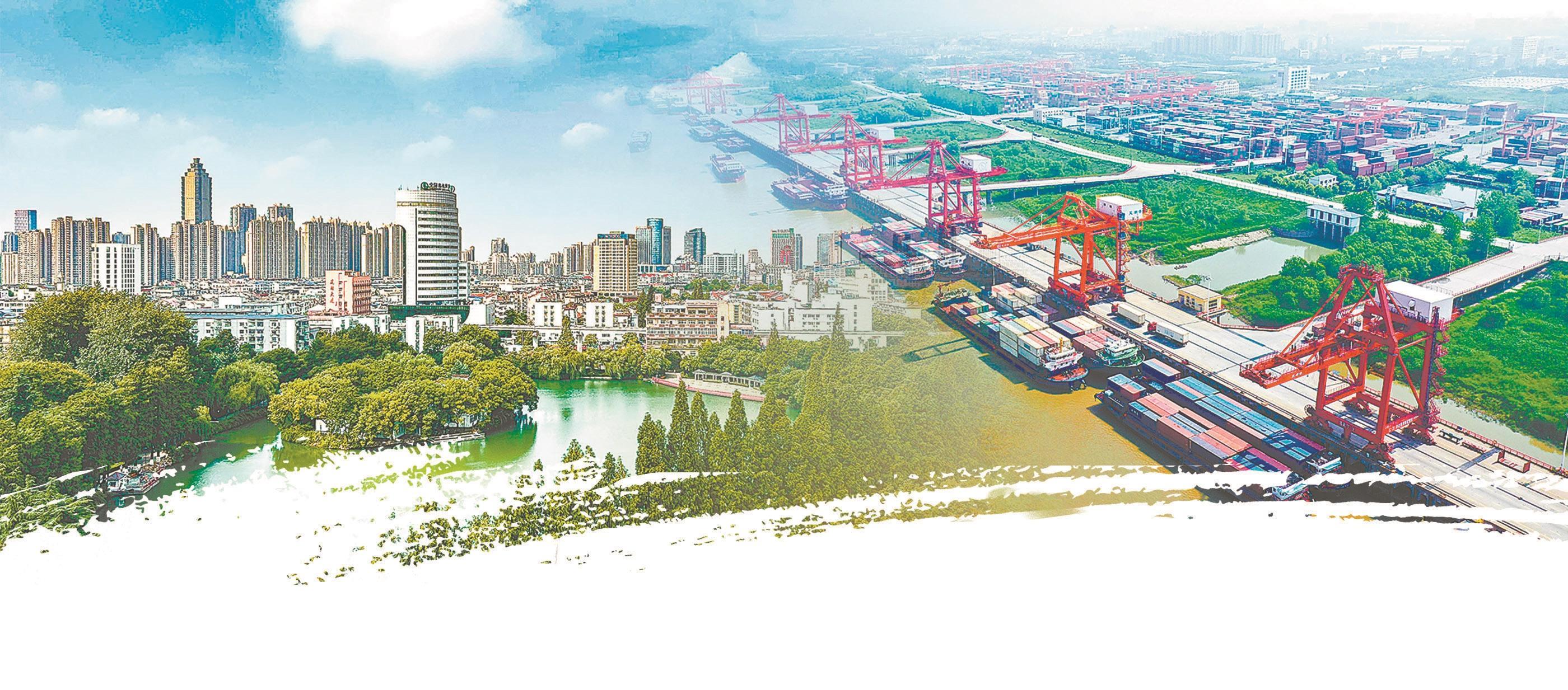 左图:绿映江城。本报通讯员 吕云飞 摄 右图:繁忙的芜湖港。本报通讯员 陈 剑 摄