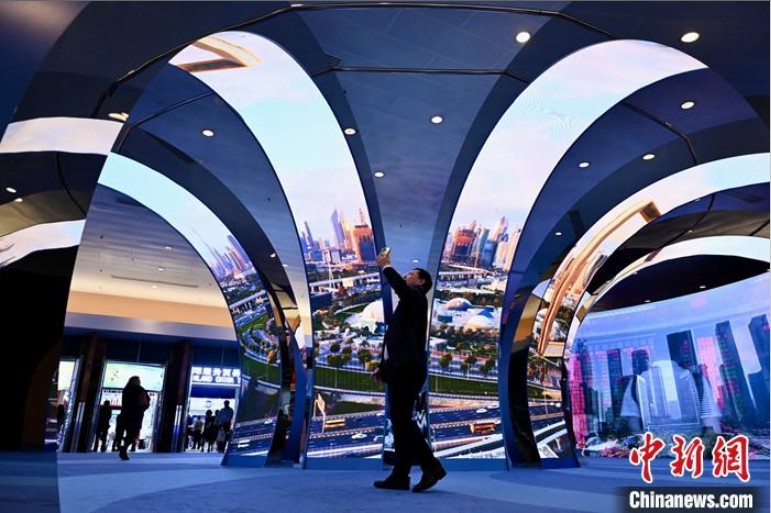 9月13日,第八届“一带一路”高峰论坛在香港会议展览中心开幕。图为参与会议的嘉宾被“一带一路”高峰论坛的电子屏幕播放的片段所吸引。中新社记者 李志华 摄