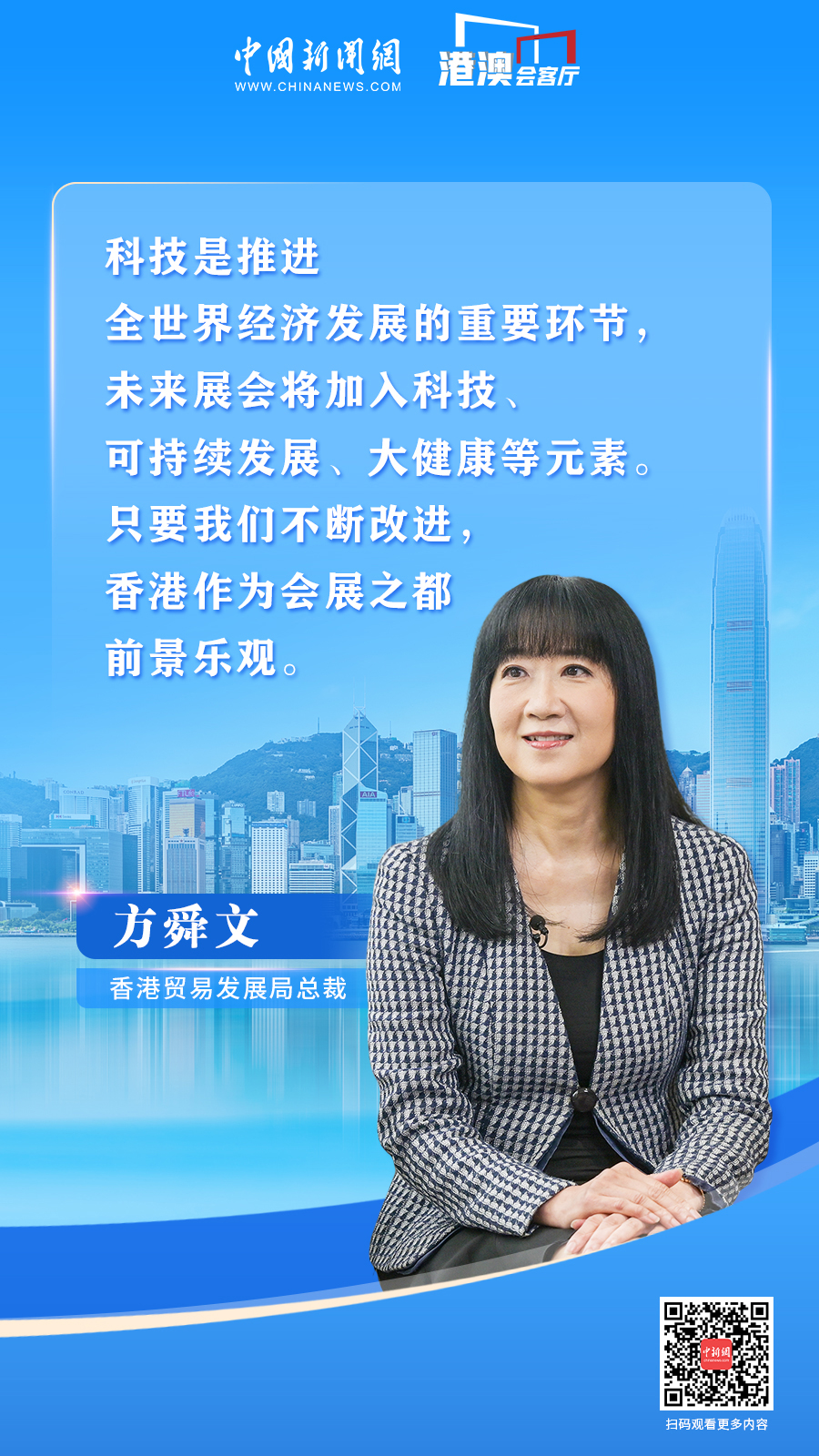 香港贸发局如何推动会展业疫后复苏?未来有何新理念?如何助力“一带一路”倡议,帮助企业“走出去,引进来”?方舜文近日接受中国新闻网“港澳会客厅”专访,对这些问题一一作答。
