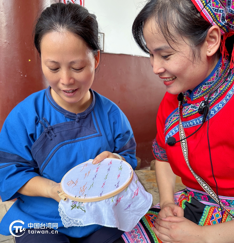 当地瑶族女性用江永女书绣手帕。(中国台湾网 李柏涛 摄)