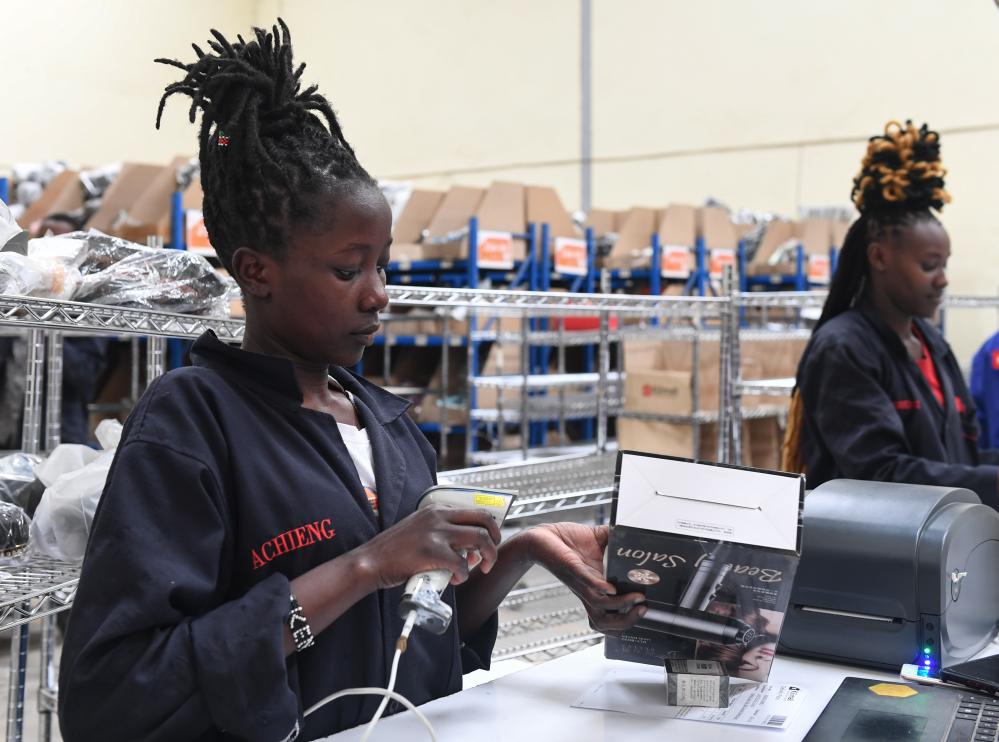 随着当地传统购物季到来,位于肯尼亚首都内罗毕近郊的Kilimall仓库呈现一片热火朝天的忙碌景象,数米高的货架摆满了来自中国及其他国家琳琅满目的商品,当地员工穿梭于一排排货架间,有条不紊地清点货物、扫码、打包装箱……