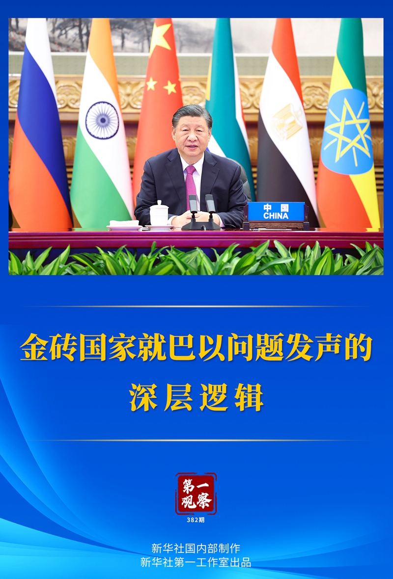 “今天,我们就巴以问题协调立场、采取行动,为扩员后的‘大金砖合作’开了个好头。”习近平主席强调。