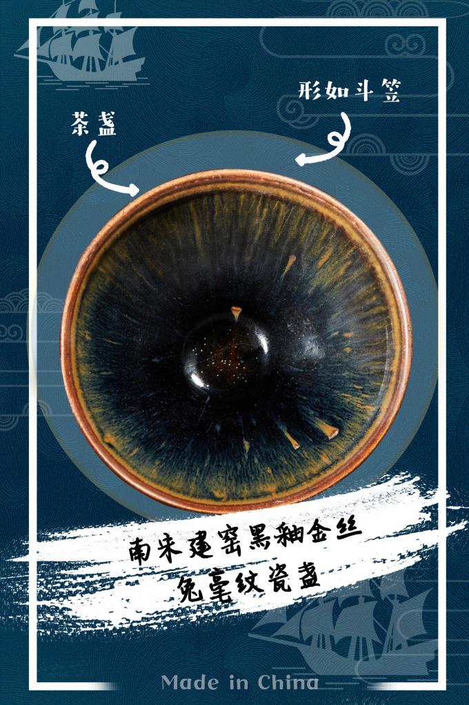 南宋建窑黑釉金丝兔毫纹瓷盏