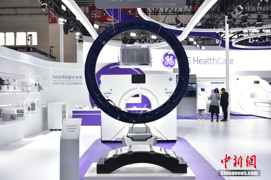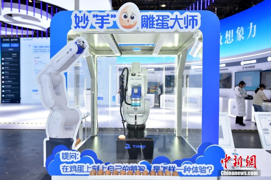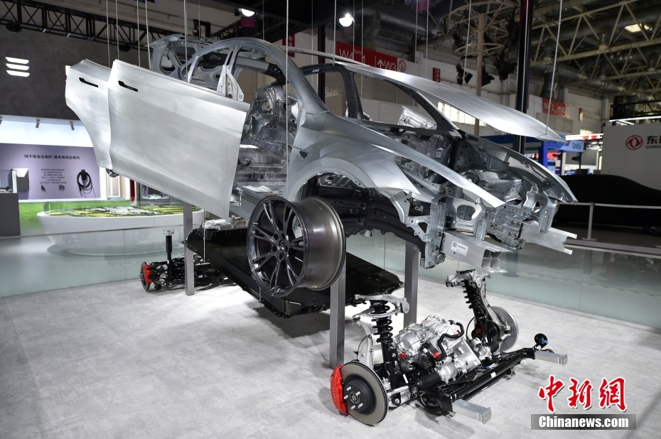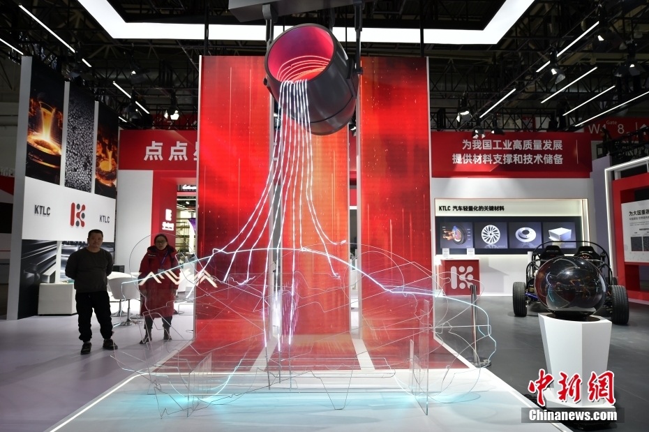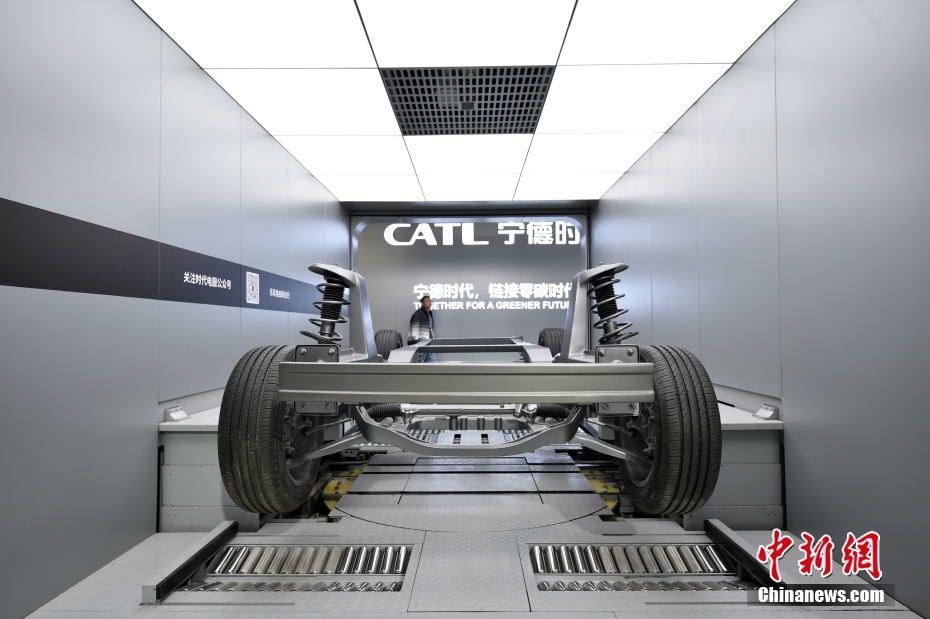 图为智能汽车链展厅里,宁德时代展出的换电系统。