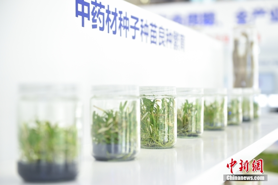 图为健康生活链展厅里,国药集团展出的中药材种子种苗良种繁育技术。