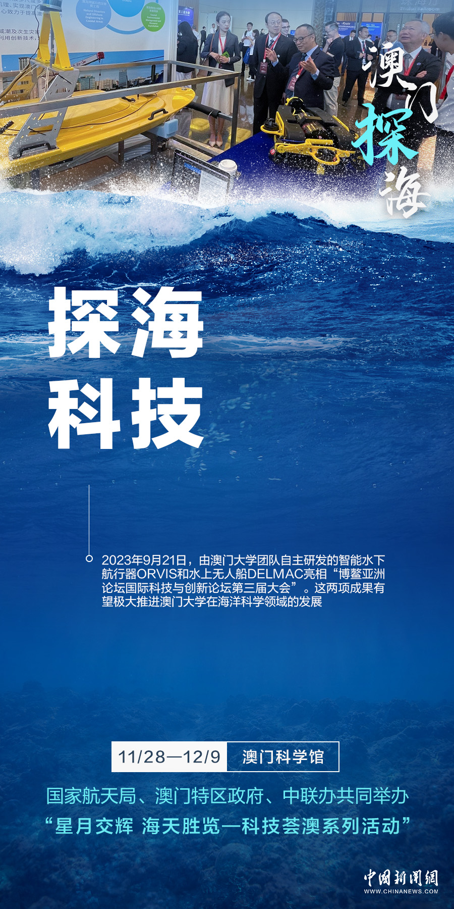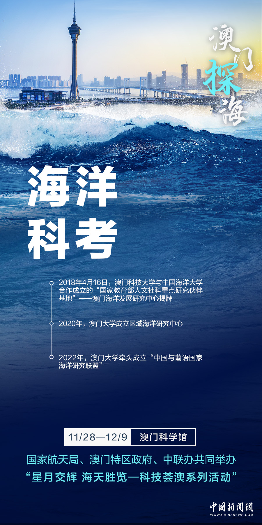 “逐梦苍穹 探索深海”中国航天航海科技荟澳科普展开幕,一组海报看澳门的“星”与“海”。