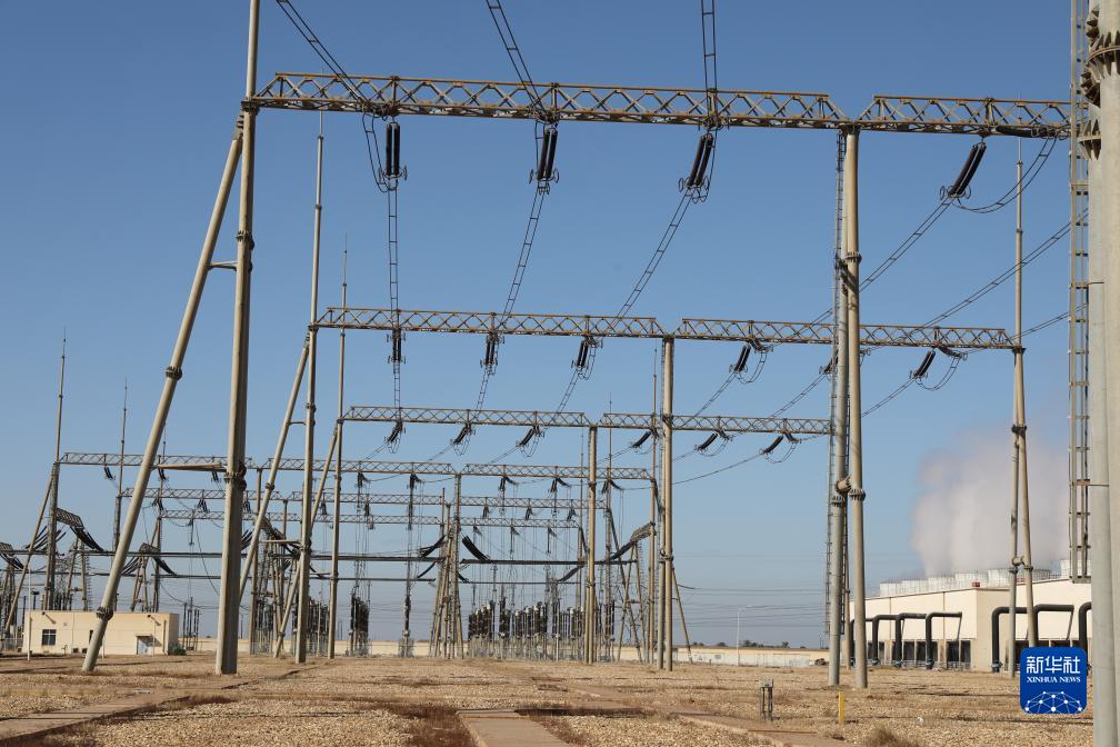 这是11月21日在伊拉克瓦西特省拍摄的华事德电厂的电力传输设备。新华社发(哈利勒·达伍德摄)