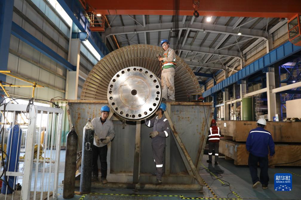 11月21日,在伊拉克瓦西特省,伊方员工在华事德电厂工作。新华社发(哈利勒·达伍德摄)