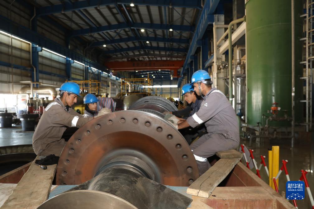 11月21日,在伊拉克瓦西特省,中伊双方员工在华事德电厂工作。新华社发(哈利勒·达伍德摄)